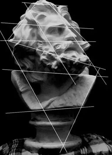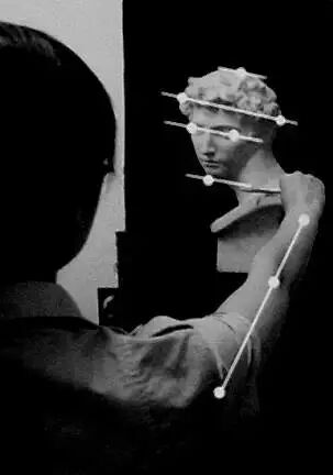 对一些点进行直线连接,测量它的倾斜度,最终画准石膏像的形体。