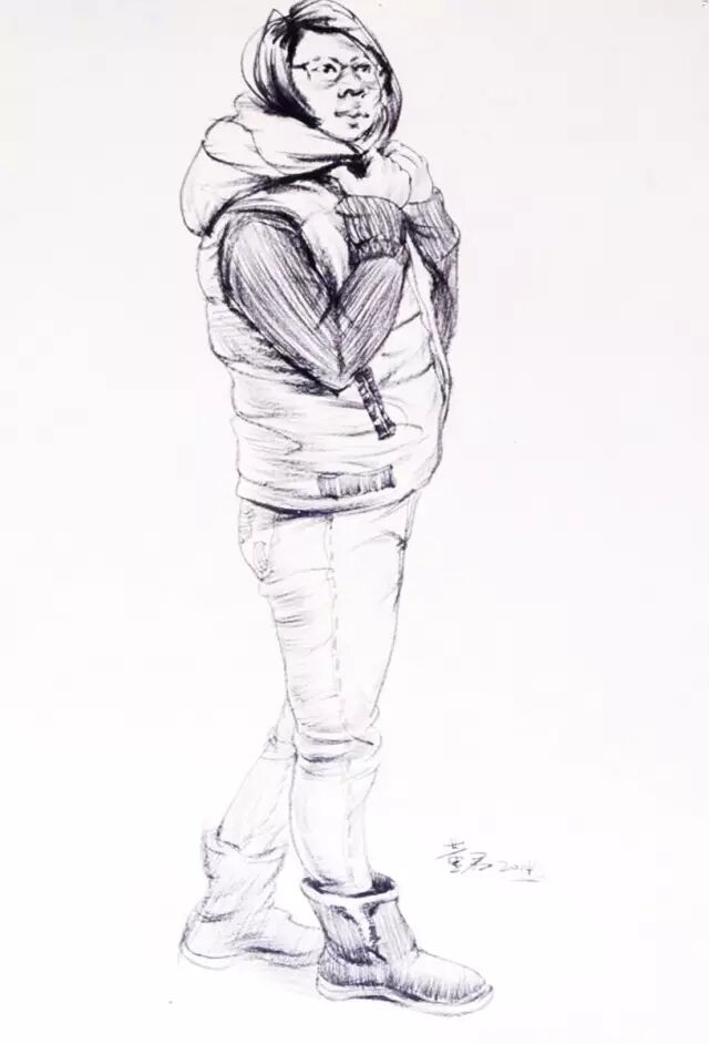 我们也需要依靠之前对这个动作的记忆,和平时的练习这个动作的熟练程度,才有能力完整地完成作品。线条速写训练中,务必学会“捕获”和表达“动态线”。动态线是人的身体中表达动作特点标志的主线。人物侧面时,动态线往往表现出来在外大概轮廓的一侧;当人物正面时,动态线会冒尖于脊椎和两上肢和两下肢的变动。捕获动态线对于画好动态线条速写也是非常重要的。
