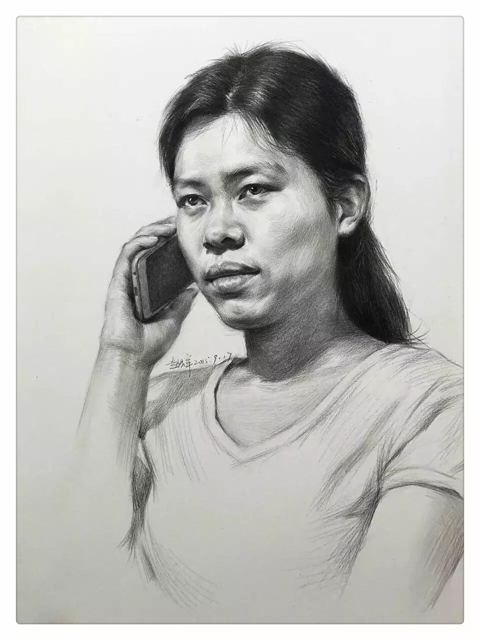 线性素描女青年